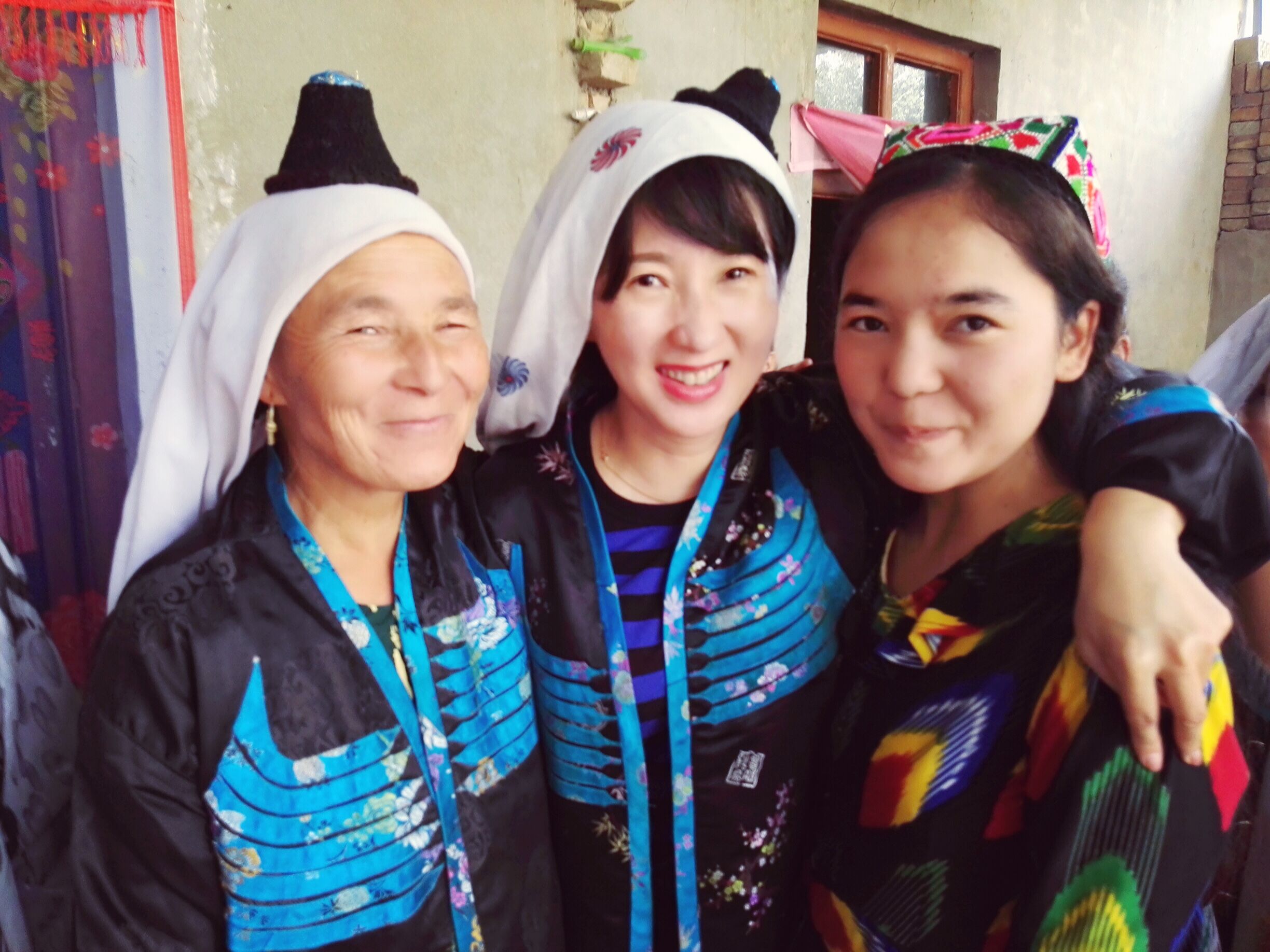 ”王妈妈“(中)与”女儿“库瓦汗(右一)和她的妈妈(左一)在一起