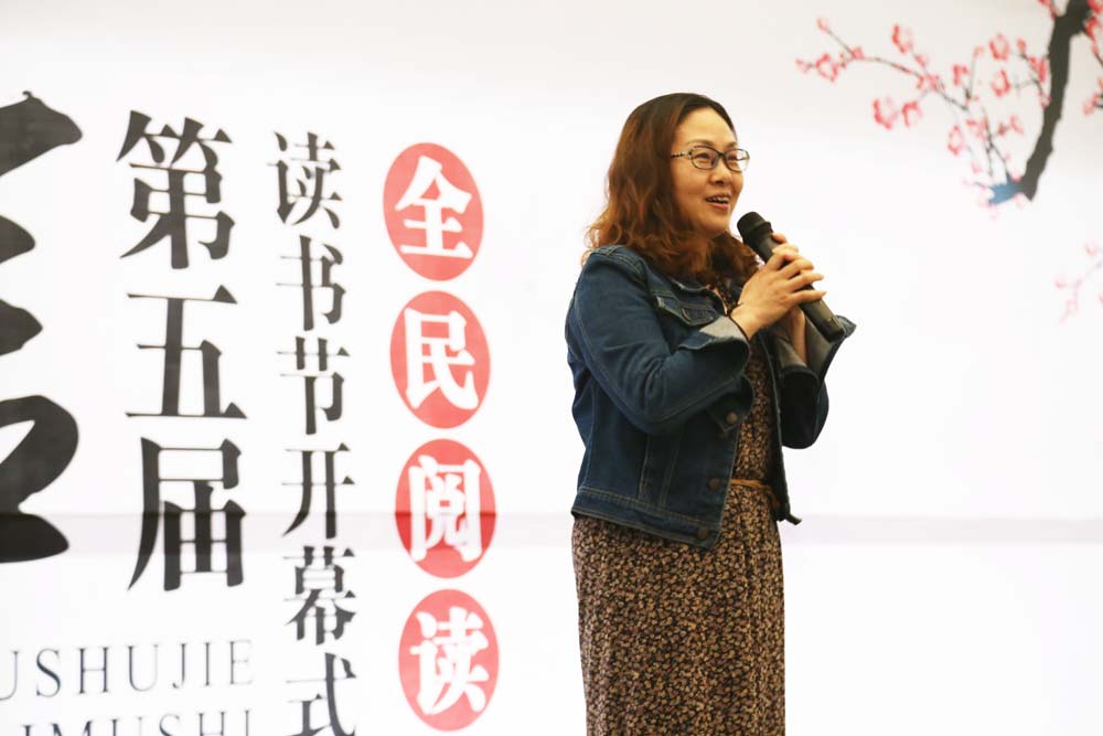 在“好书伴我成长”环节中,三位师生代表分别分享了他们阅读的故事。孙翔副院长分享了她年少时喜欢读书的情景,热爱读书影响她大学专业的选择,以及工作后阅读陪伴她思悟人生的故事。她还推荐了她最近又在再次阅读的《老人与?!泛汀栋倌旯露馈?,并以“读书可以静心”、“读书可以思辨”,鼓励我校师生多读书,读好书。学院艺术设计系支部书记朱磊老师分享了他阅读《习近平谈治国理政》(第二卷)的心得,他还铿锵有力地朗读了其中关于“信仰”选段,呼吁同学们树立远大理想,为实现中国梦贡献青春力量。学院经济管理系2016级市场营销专业章文龙同学用极富感染力的声音朗读了朱自清先生的《背影》,让大家感受到成长背后坚强的父爱力量。