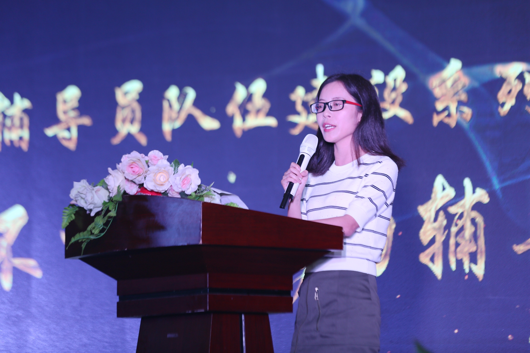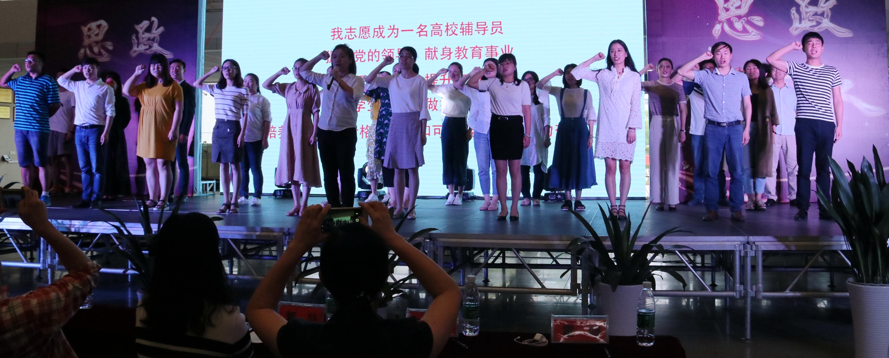 随后,学院全体辅导员上台集体宣誓高校辅导员誓词,重拾初心。学院党委委员、副院长尤敏为“思政代言人”颁奖并讲话。他借“小米两问”指出,此次活动回答了“我是谁”“我为谁而奋斗”这两个问题:“我是谁?我是辅导员,不一young的辅导员。我为谁而奋斗?我为一切学生奋斗,我为了学生的一切奋斗,我的一切为学生奋斗”。