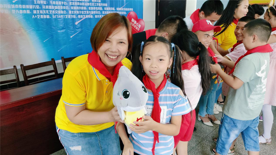 活动当天,由斗鱼平台人气主播作为线下“助教”,一边与线上艺术指导老师共同指导应城市城北街道办事处中心小学的学生创作,一边不断与直播间网友互动,鼓励网友通过赠送虚拟礼物“小鲨鱼”的方式,帮助更多的留守儿童实现艺术教育梦。