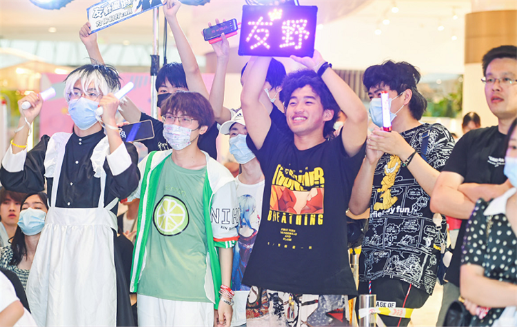 在所有到场嘉宾、场外观众和应援团热情的尖叫声和欢呼声中,四个赛道、八个组别、32名(组)选手的精彩角逐轮番上演,长达四个小时的比赛火力全开,效果拉满,印有参赛选手头像的应援手幅和扇子在人群中格外显眼,每位选手都在舞台上闪闪发光,尽力释放自己对国漫的热爱。