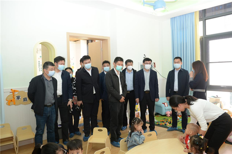 刘冬、刘学明等领导还走进托育园,为小朋友们送上小礼物。并察看了室内设计和功能布局,参观了教室、睡眠室、感统活动室、厨房等。托育园负责人通过知音托育吉祥物“知知”和“音音”的成长记,从幼儿营养与喂养、睡眠、生活与卫生习惯、动作、情感与社会性、认知、语言等方面,介绍了园内八大主题课程。托育园设计风格在色调、装饰、区角布置上形成温馨、美观的空间感受,所有的幼儿家具都严格优选实木环保材料,采用圆角设计。刘冬对托育园防夹手门等细节之处考虑幼儿安全表示赞赏,刘学明一再强调要时刻把幼儿安全放在第一位。