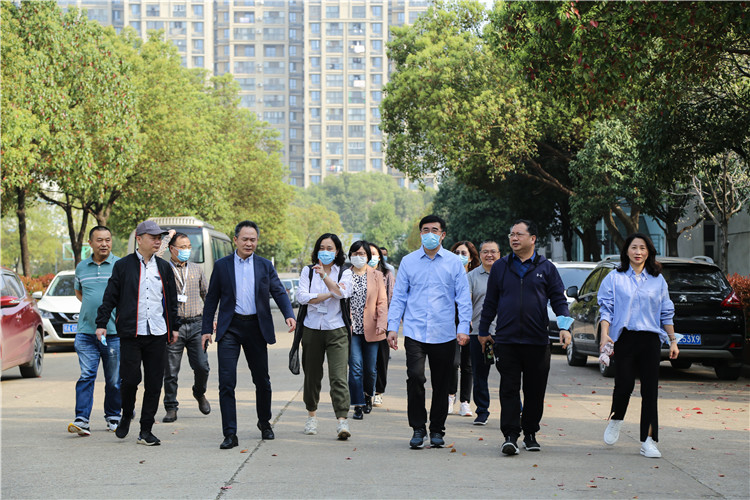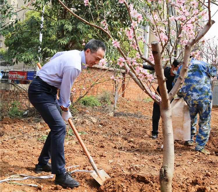 临近午时,调研组一行又兴趣盎然地来到正在升级建设中的学校文化产业产教融合人才孵化基地,与武信学院教师共植知音林。大家携手种下了桃树和李树,期冀学校绿意盎然、大树参天、桃李芳菲。
