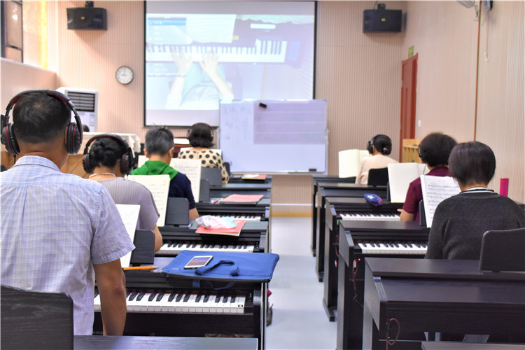 为了满足新时代老年人多样化、多层次的学习需求,本学期的课程做了进一步细化,手风琴班和钢琴班除了原有的班级,分别加开了初级班和入门班、考级班。其中,老年钢琴零基础班通过零基础学习,化解了不少老年人想学钢琴,但是对五线谱完全不了解的烦恼,而钢琴考级班的开设又能帮助学员精细定位自己的钢琴水平,更好地把握学习进度。