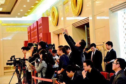 图为:海内外媒体聚焦湖北团。