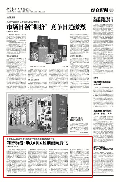 10月9日,中国新闻出版广电报刊发了《知音动漫:助力中国原创漫画腾飞》一文,报道了知音动漫多部作品入围2019年原动力中国原创动漫出版扶持计划,点赞知音动漫的改革探索和为中...